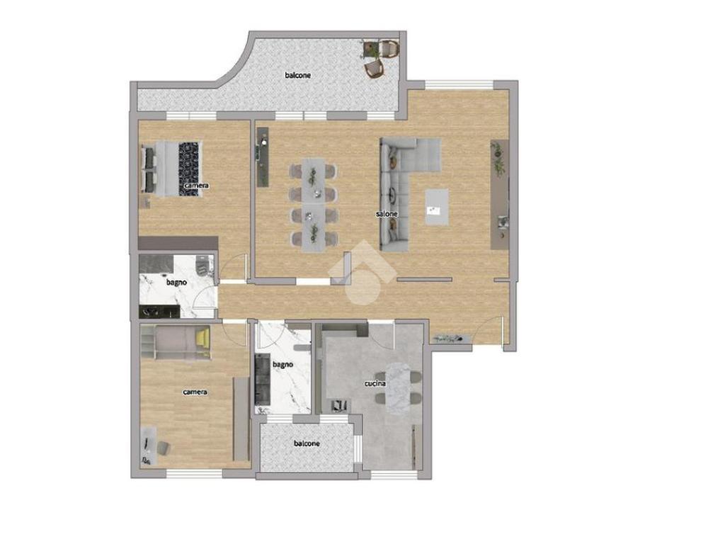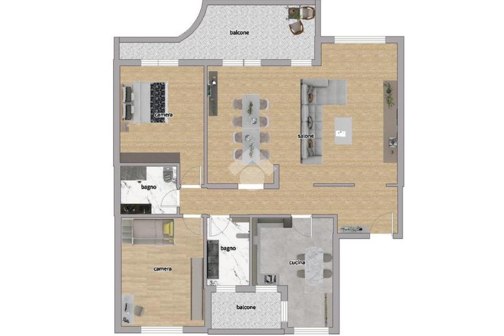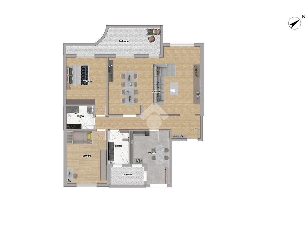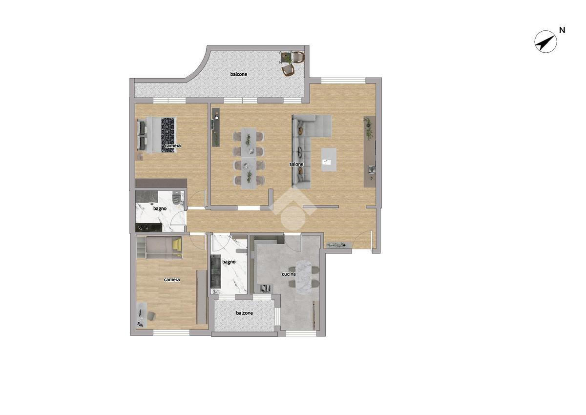 Internamente composto da: ingresso, salone doppio, cucina abitabile, 2 camere da letto matrimoniali, 2 bagni e 2 balconi.